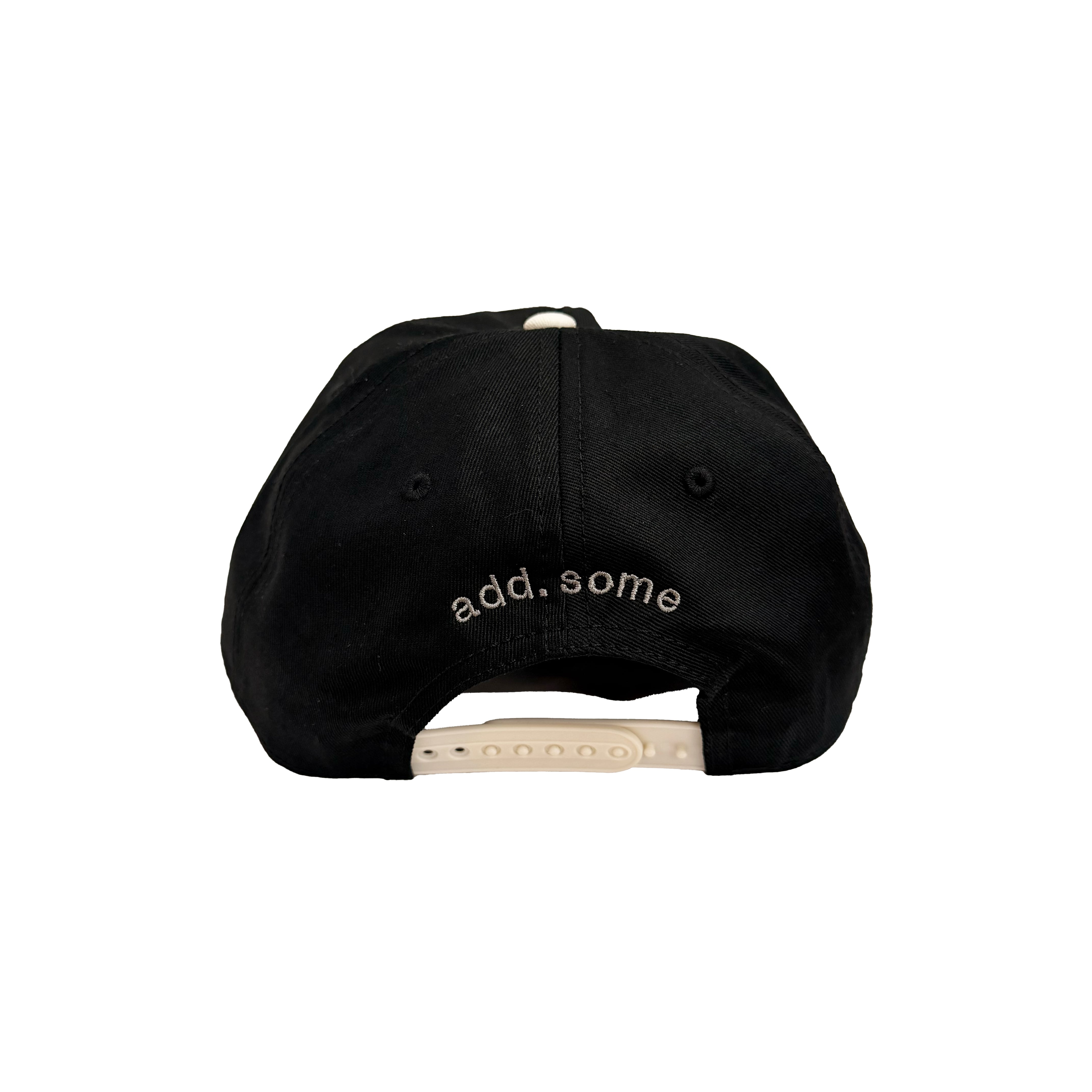 LABELの文字はタタミ縫い、小さいsとバックのadd. someはサテン縫いで仕上げています。